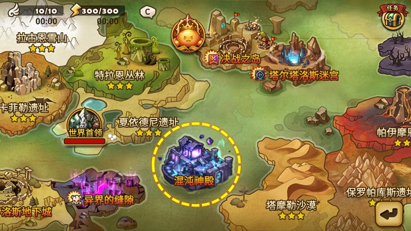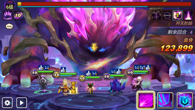 混沌神殿的首领虽然没有单独的攻击条,但是召唤师每获得4回合,首领就会获得1回合。