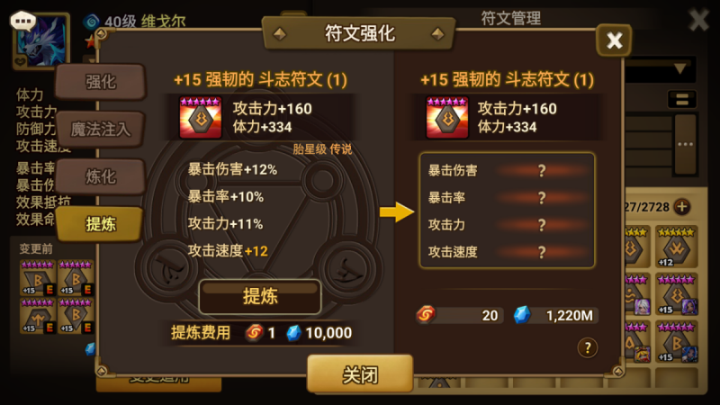 通过使用“提炼石”与“魔力碎片”,可以体验符文与神器全新强化系统,即符文提炼与神器炼化。