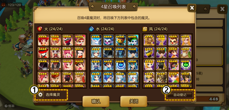 此功能将适用于神秘召唤书、各属性召唤书、传说召唤书等所有可能召唤出4星魔灵的召唤方式。启用后,召唤结果中的4星魔灵将必定出自您指定的列表。