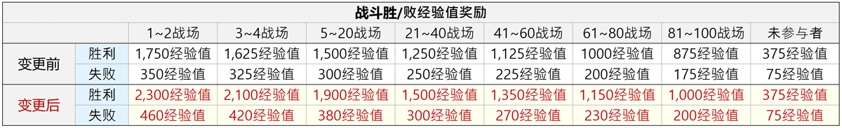 ▶ 在竞技场跨服战中,战斗胜利及失败时获得的“名誉经验值”奖励将上调。