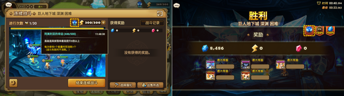 当“阿美利亚的幸运”能量全部消耗后,后续战斗将自动转换为普通掉落率。