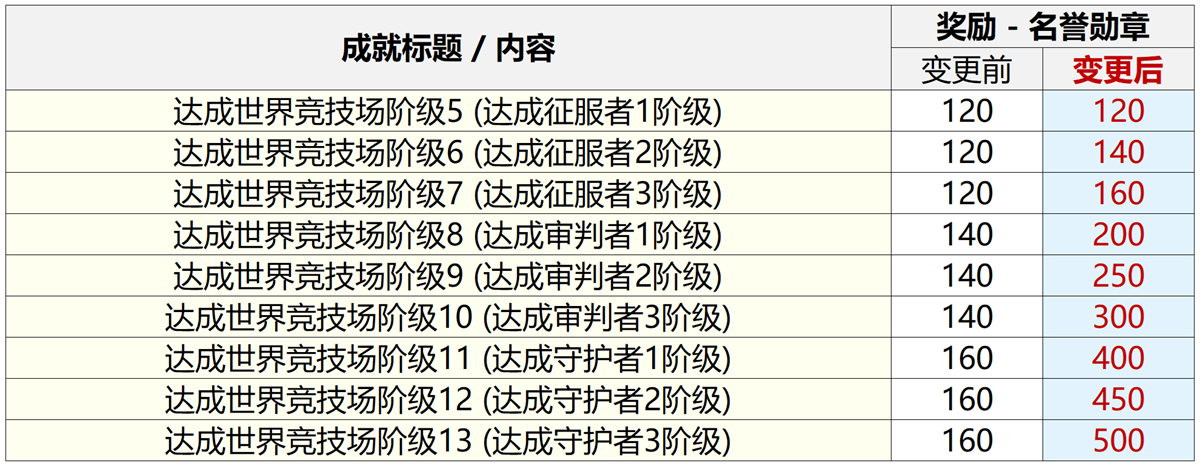 :世界竞技场阶级达成成就的奖励将获得提升。