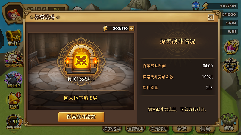 选定一个心仪的地下城后,将在最多8小时内,自动完成最多220次战斗(默认次数为180次)。