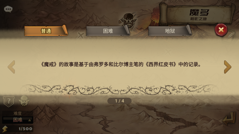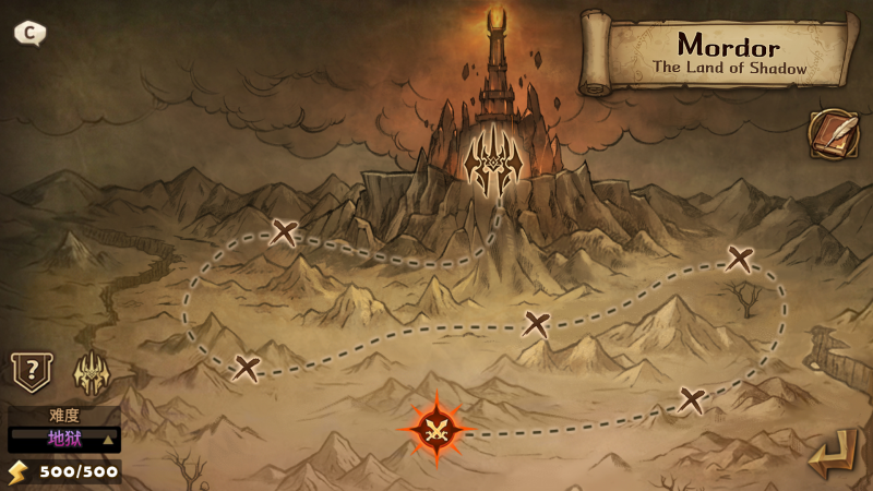 我们以魔戒小说核心舞台——魔多——为背景,根据普通/困难/地狱不同难度等级,分别将其划分为黑门、末日火山与巴拉督尔三大区域,供各位依次挑战与探索。