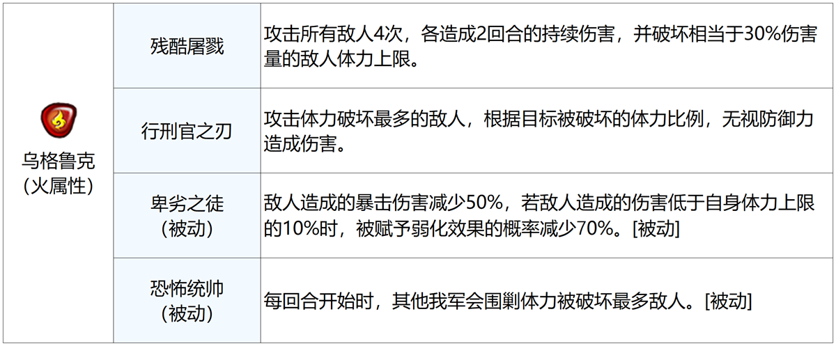 从技能信息来看,在与乌格鲁克的战斗中,若我方拥有能持续提供护盾的魔灵,将极大助力通关。鉴于被破坏的体力无法恢复,从一开始就以防止体力削减的方式应战,或许是一种可行策略。