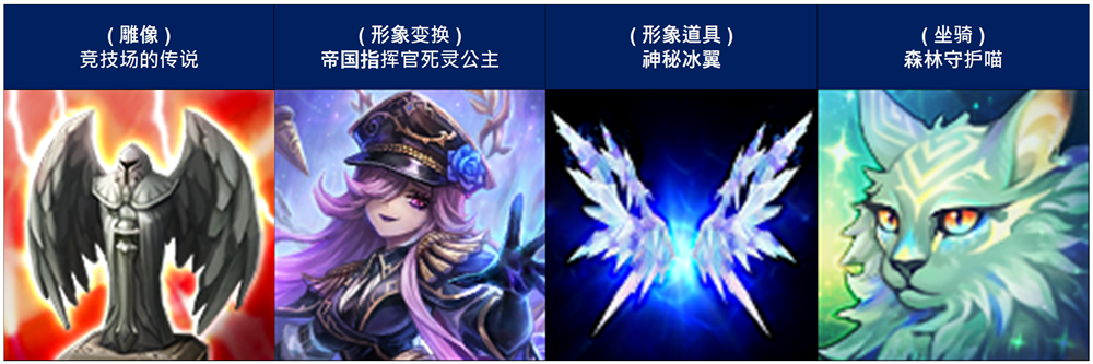 * 第36季限定奖励:形象变换 - [帝国指挥官死灵公主]、形象道具 - [神秘冰翼]、坐骑 - [森林守护喵]
