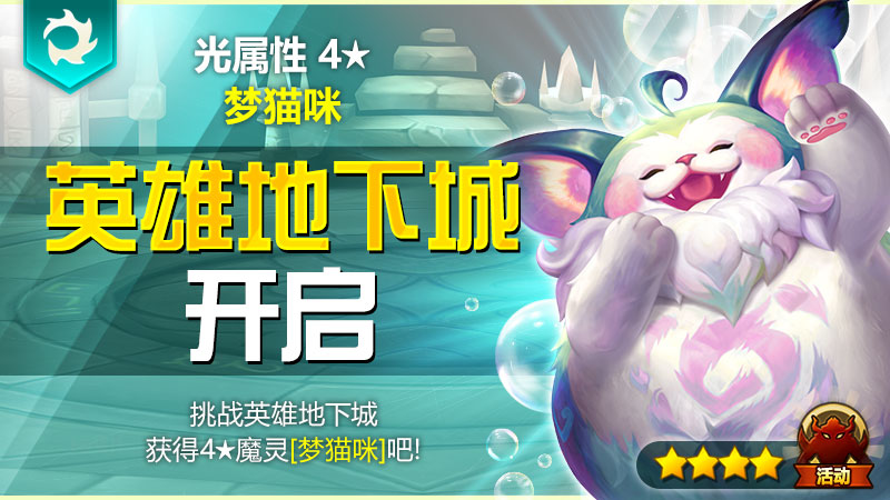 1月份,光属性4★魔灵[梦猫咪]英雄地下城等你来战!