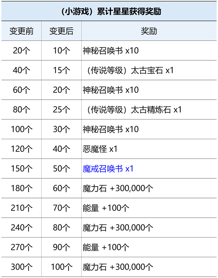:整体下调获得小游戏奖励所需星级条件。