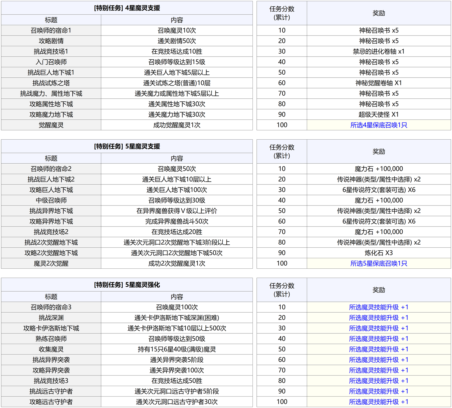 任务内容涵盖了召唤、通关特定内容等,只要正常进行魔灵召唤,即可自然达成。