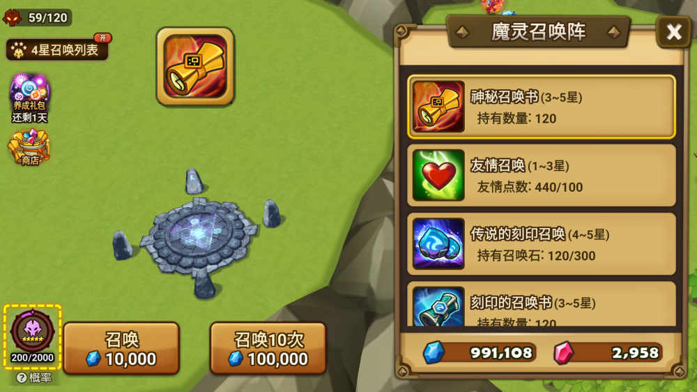 - 惊喜礼物:神秘召唤书x10